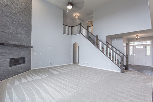 View photos of our past Brookhaven home design featuring a two story family room, large island open to the family room and a flex room with a dome ceiling.